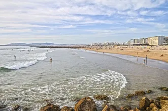 Conhecida pela sua extensa faixa de areia dourada e pelas águas do Atlântico, é um destino popular para banhistas e surfistas.